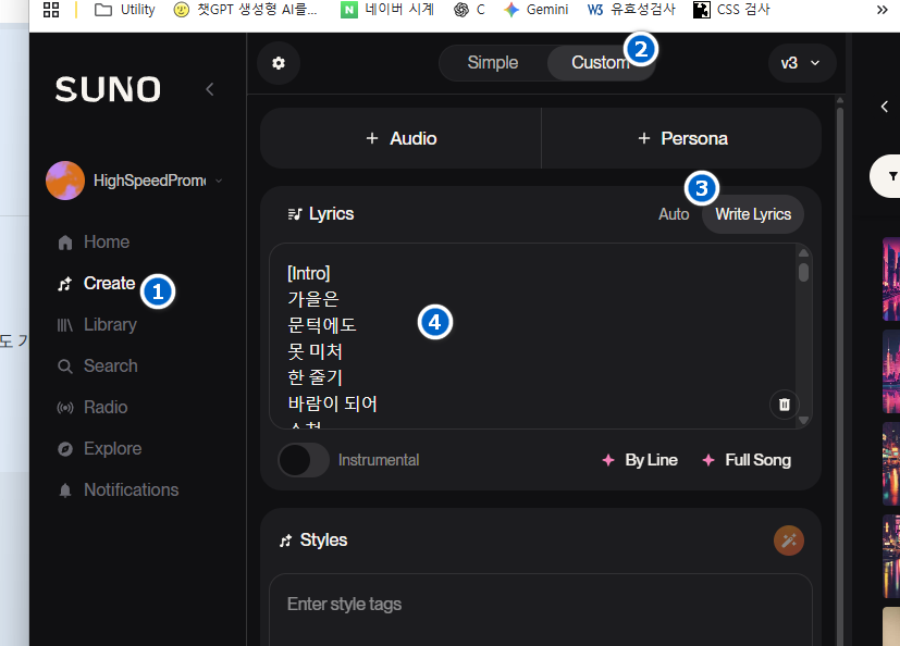 86스쳐87가는88사랑도89영원히90남는91것을Suno 적용하기