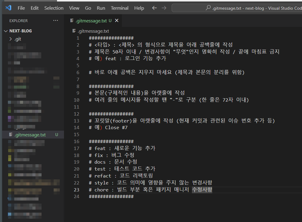 .git 이 있는 폴더와 동위에 .gitmessage.txt 생성