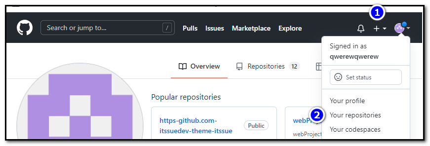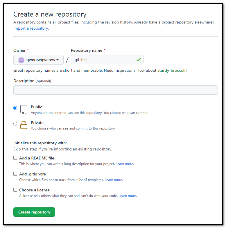 - 리포지토리 생성 : 리포지토리 란 깃허브의 프로젝트 저장 폴더를 의미한다