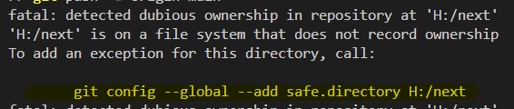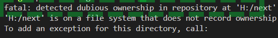 외장 저장 장치에서 리포지토리 생성시 권한문제로 생기는 메시지