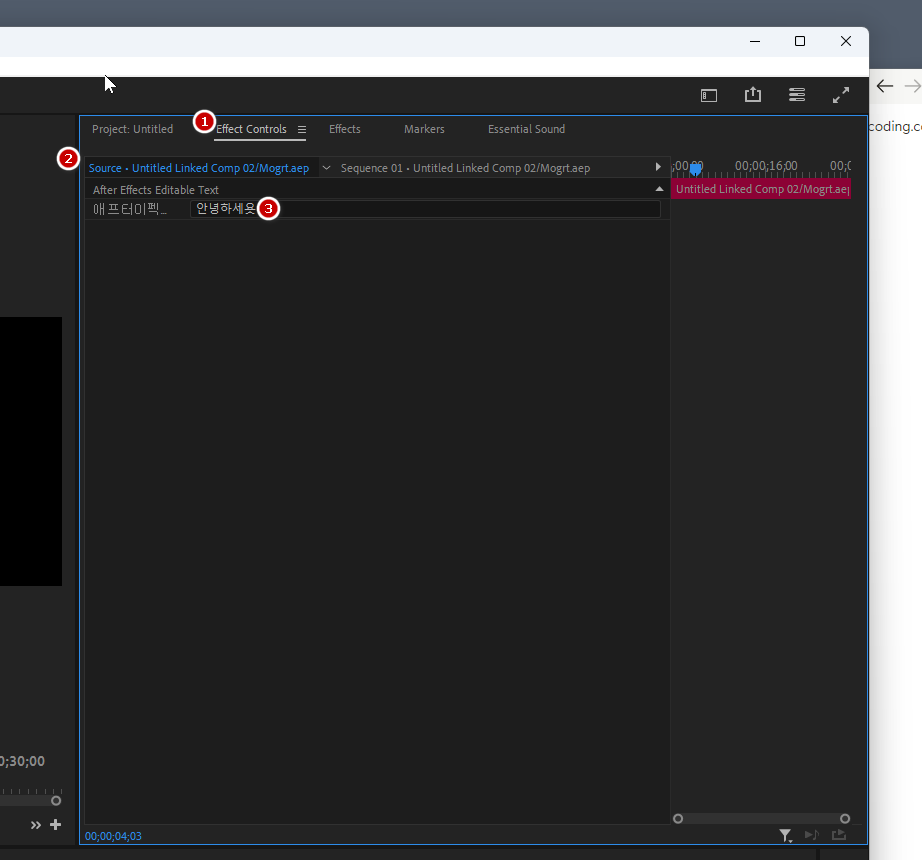 **After Effects에서 **mogrt 열기