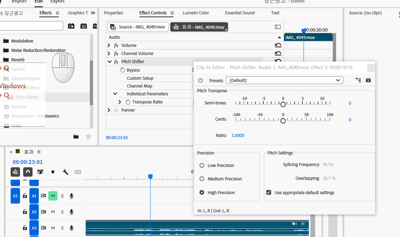 | 왜곡 (Distortions) | Earthquake, Glitch 2.0, VHS Damage, Liquid Distortion | 지진처럼 흔들리거나, 디지털 오류(글리치), 낡은 비디오 느낌의 시각적 충격을 줌. | 효과 컨트롤 패널에서 **Amount(강도)**를 조절해 왜곡의 심한 정도를 설정함. |