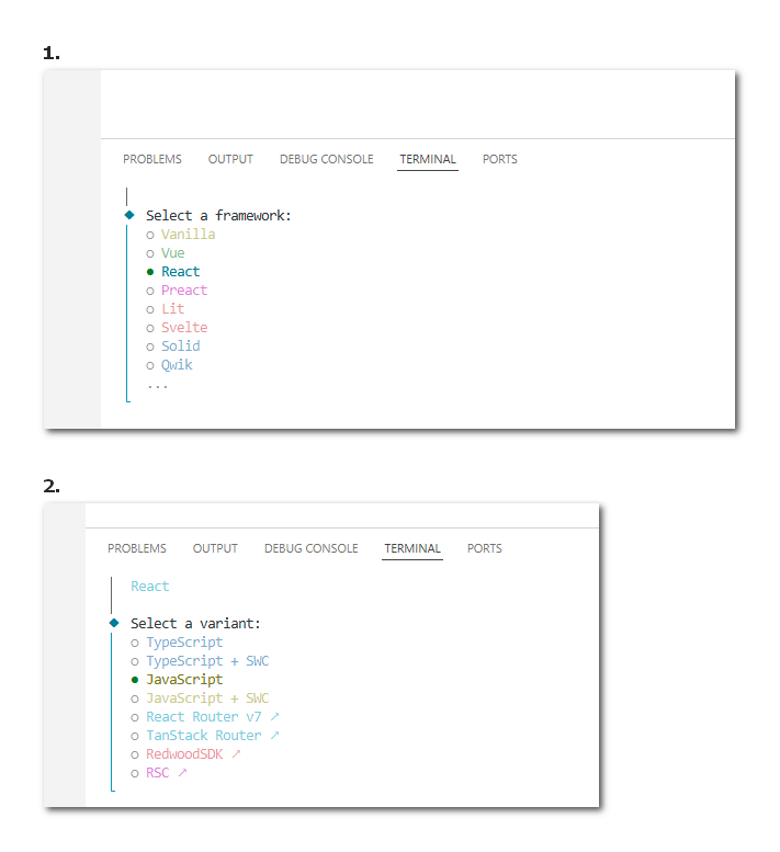 - 에러가 많이 발생할 경우 터미널 창에서 “Clear Terminal” 옵션 사용