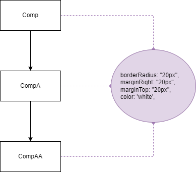 1import CompA from './CompA';2const style = {3 color: 'white',4 background: '#23b1c2',5 width: '50%',6 textAlign: 'center',7 borderRadius: '20px',8 margin: '20px auto',9 padding: '20px',10};11const Comp = (props) => {12 return (13 <div style={style}>14 <CompA />15 </div>16 );17};18export default Comp;3.1.3.src\CompA.js