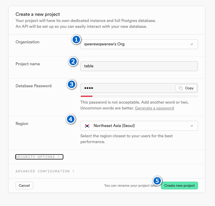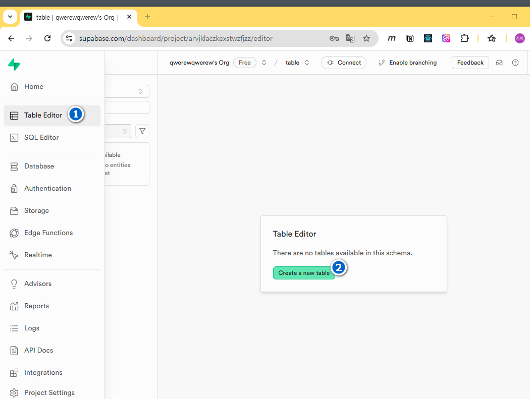 2-supabase 데이터베이스 생성