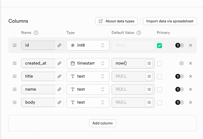 - 컬럼설정