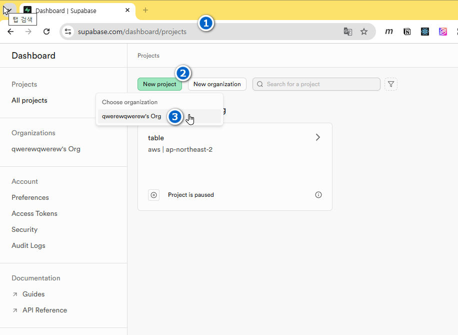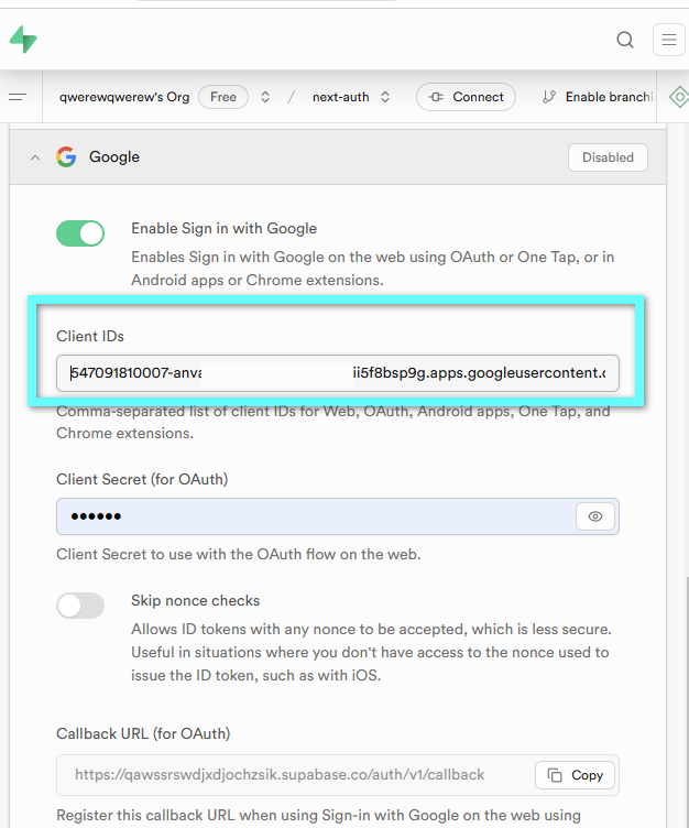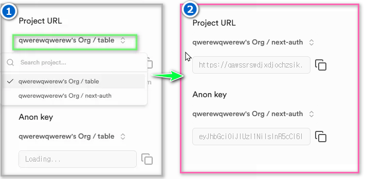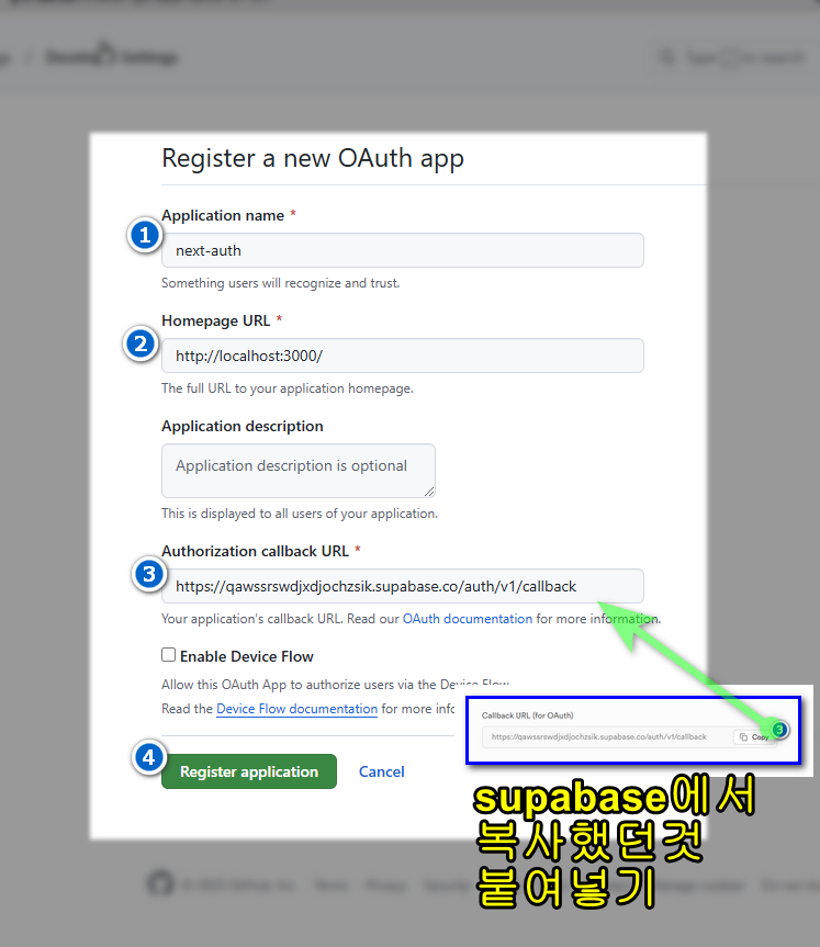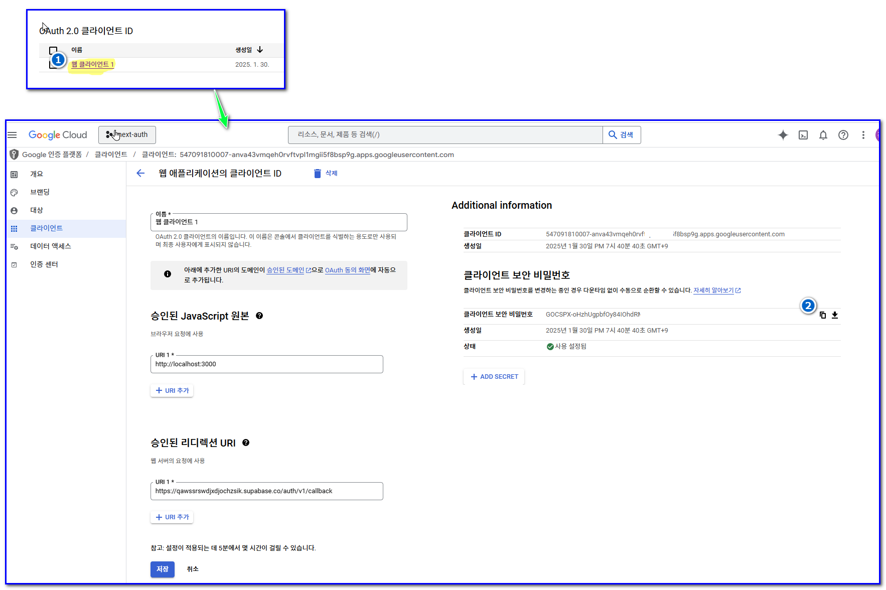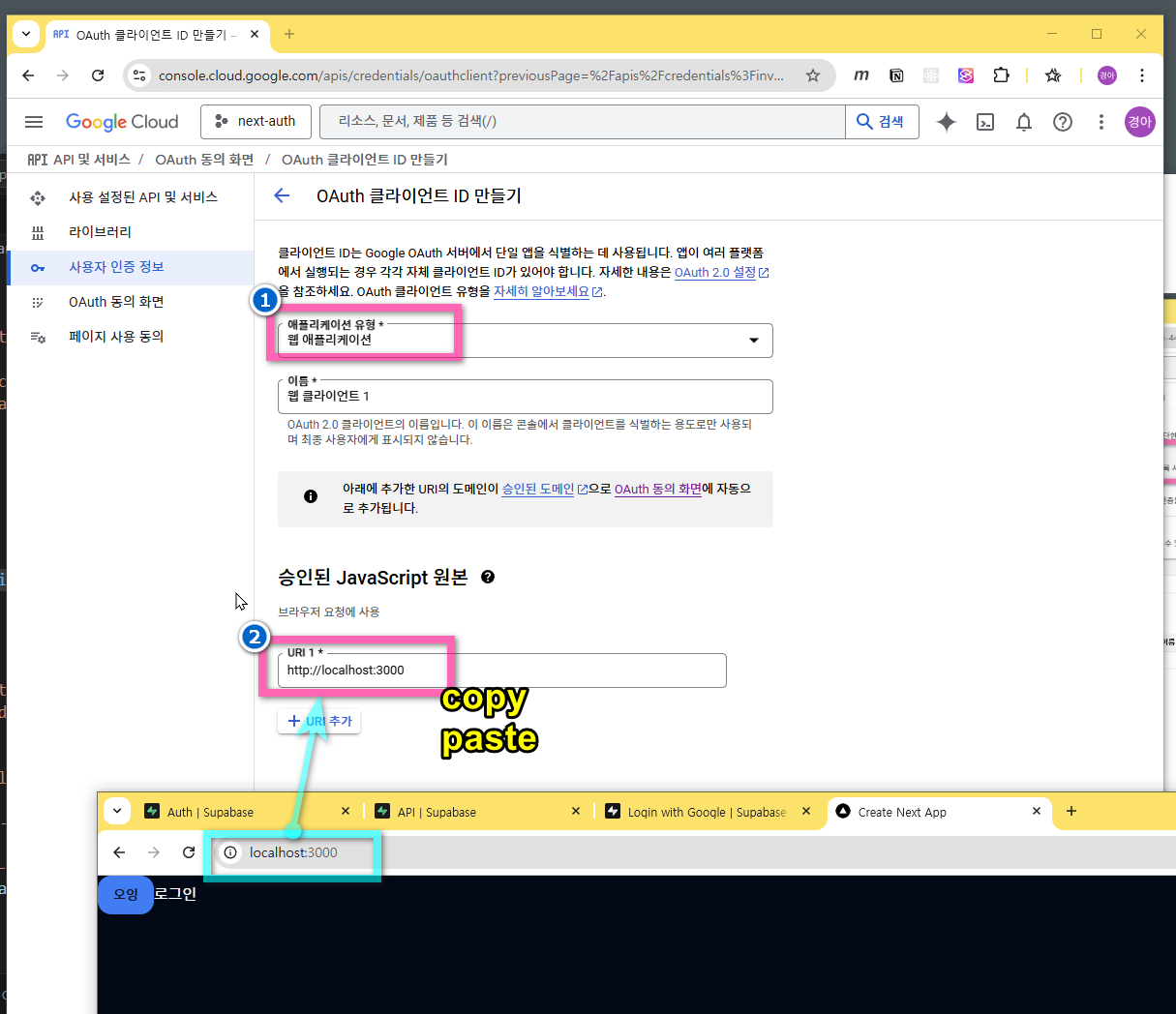 - 등록 완료 후 아이디와 비번을 supabase에 붙여넣기 그림참조