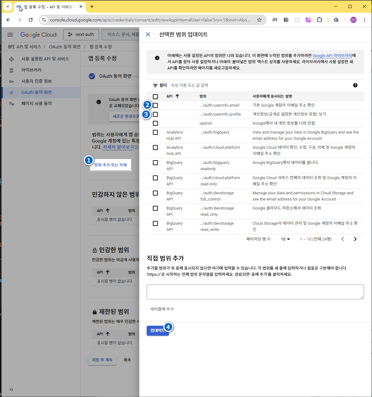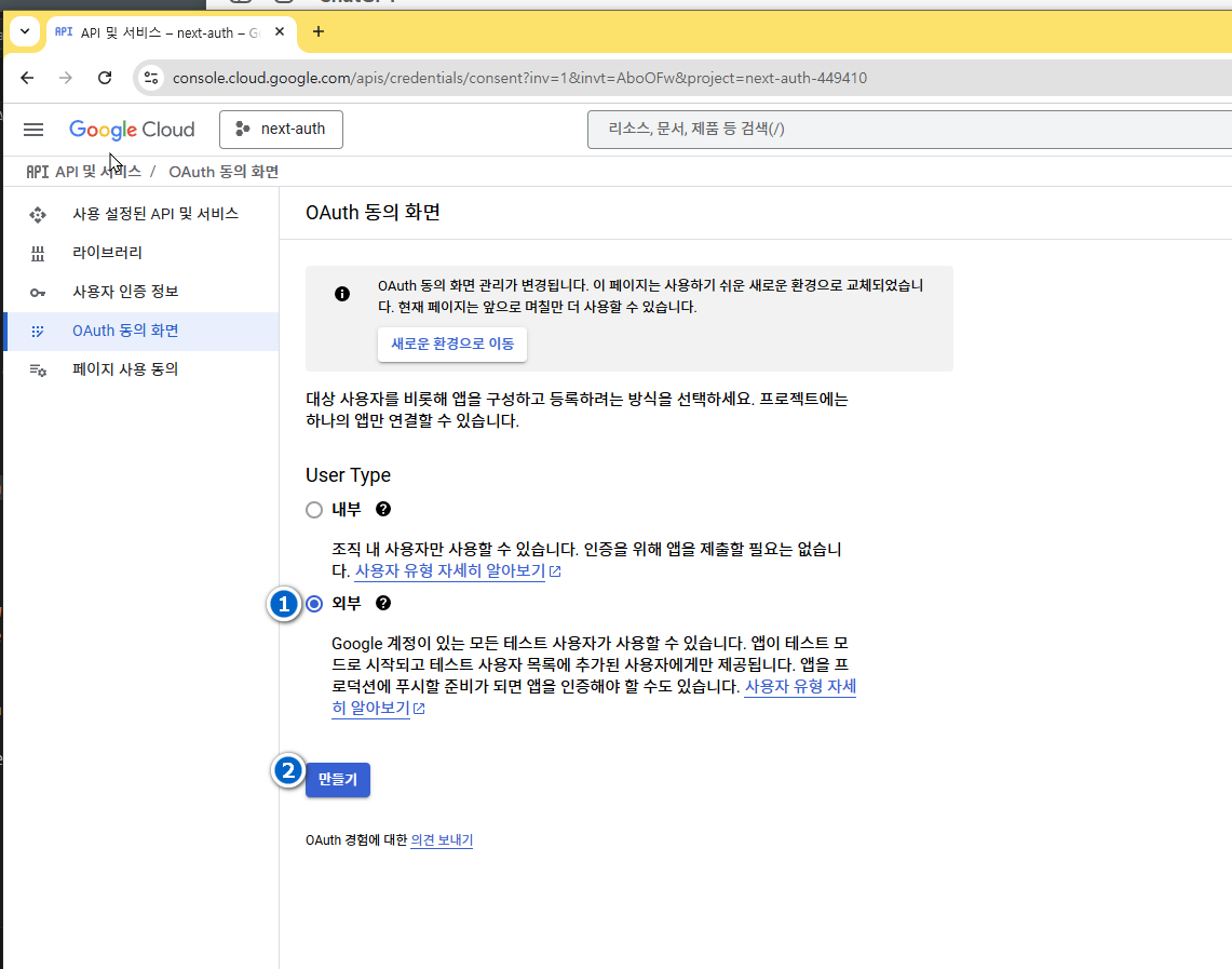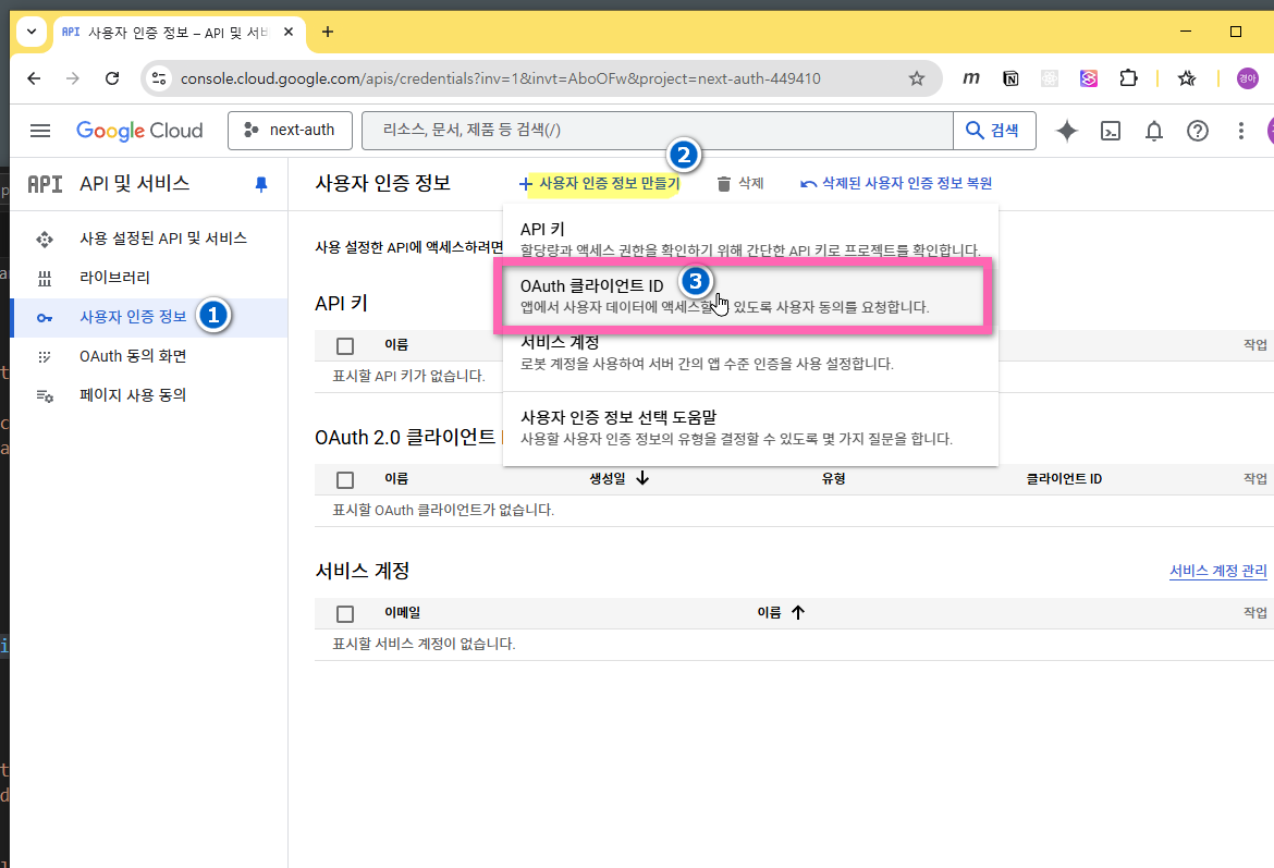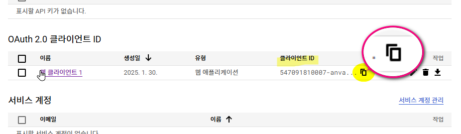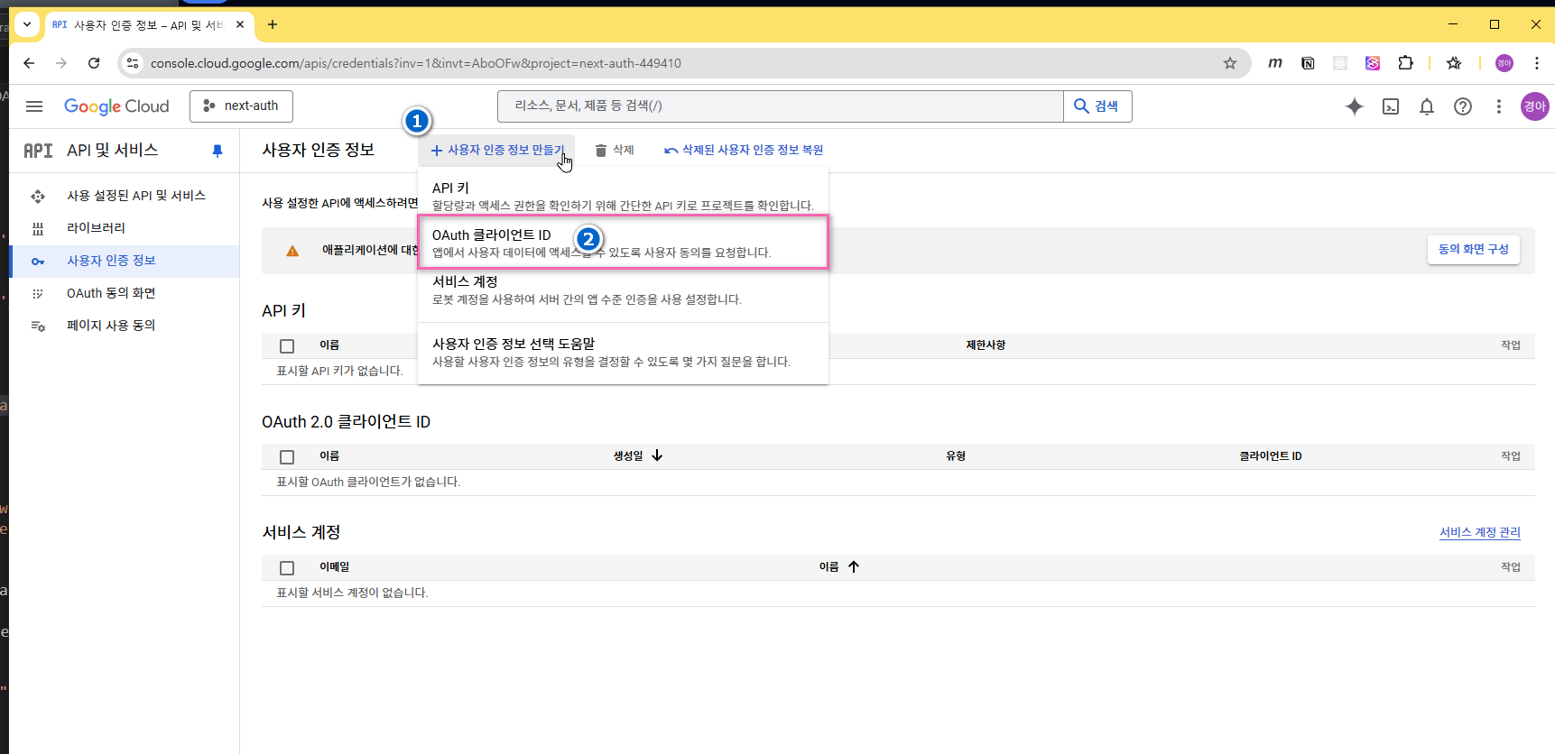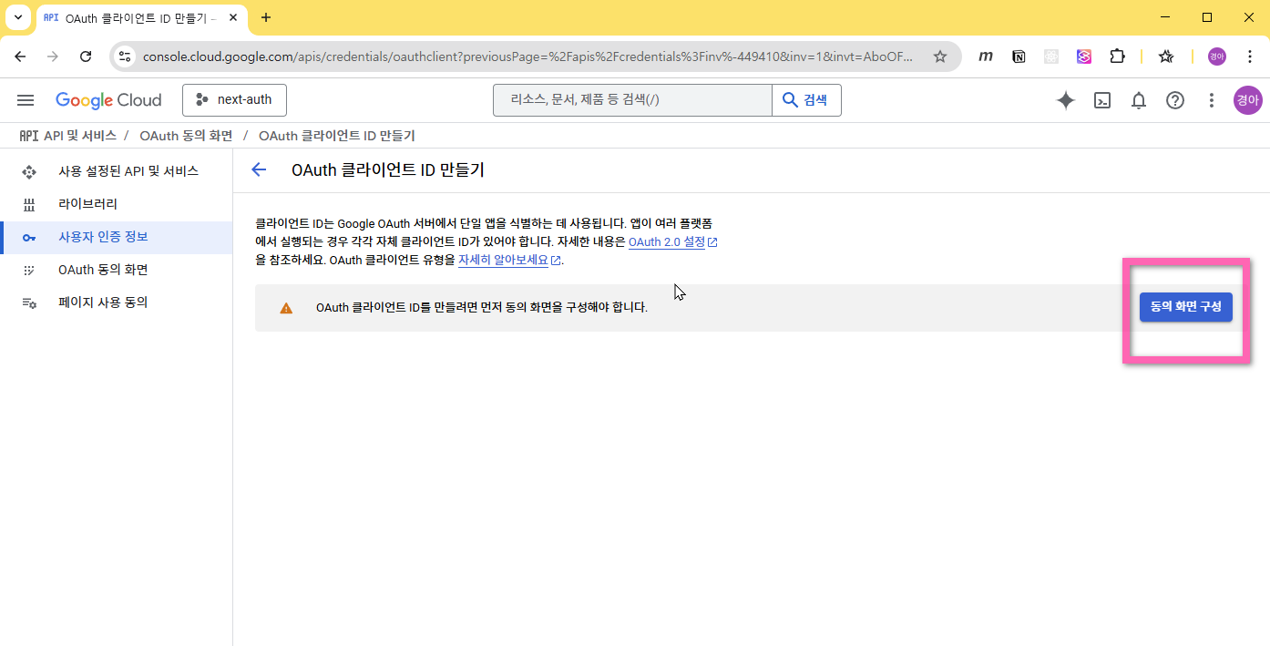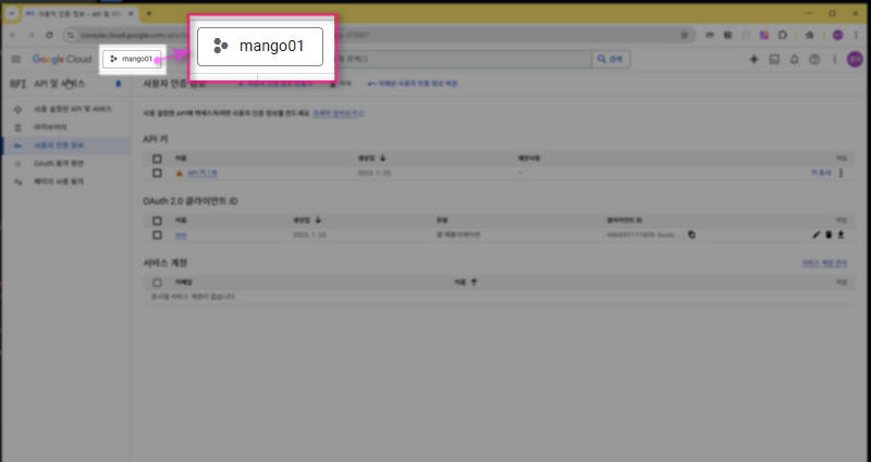 - 수파베이스 가이드의 링크로 이동 https://console.cloud.google.com/apis/credentials?inv=1&invt=AboOFw&project=mango-375607