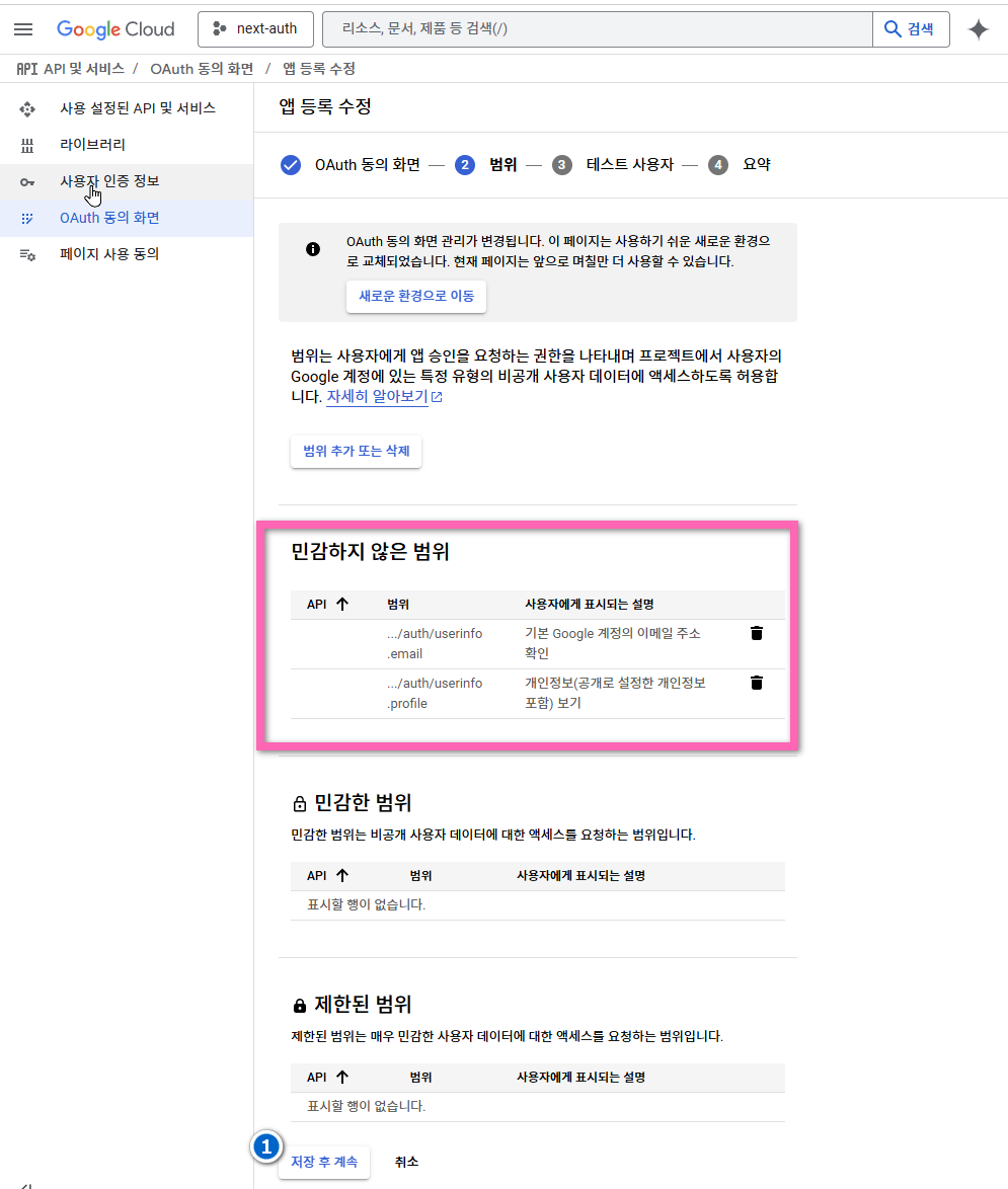- 표시된 부분에 체크한 항목이 추가되었는지 확인후 다음진행