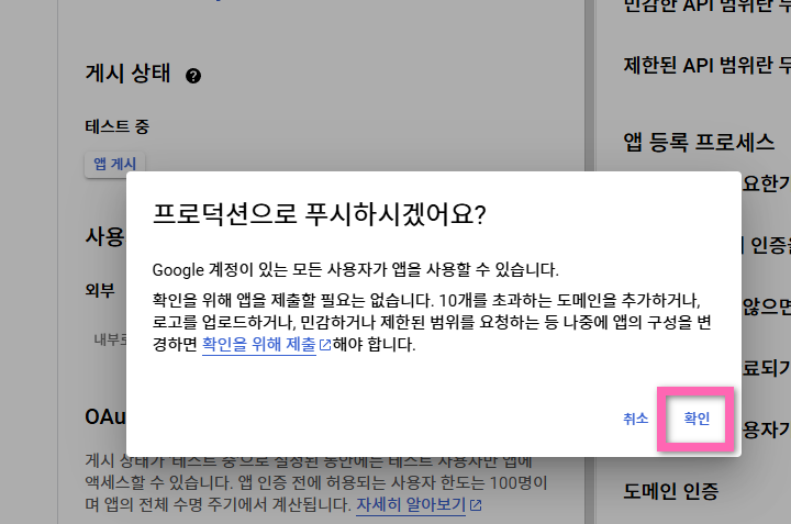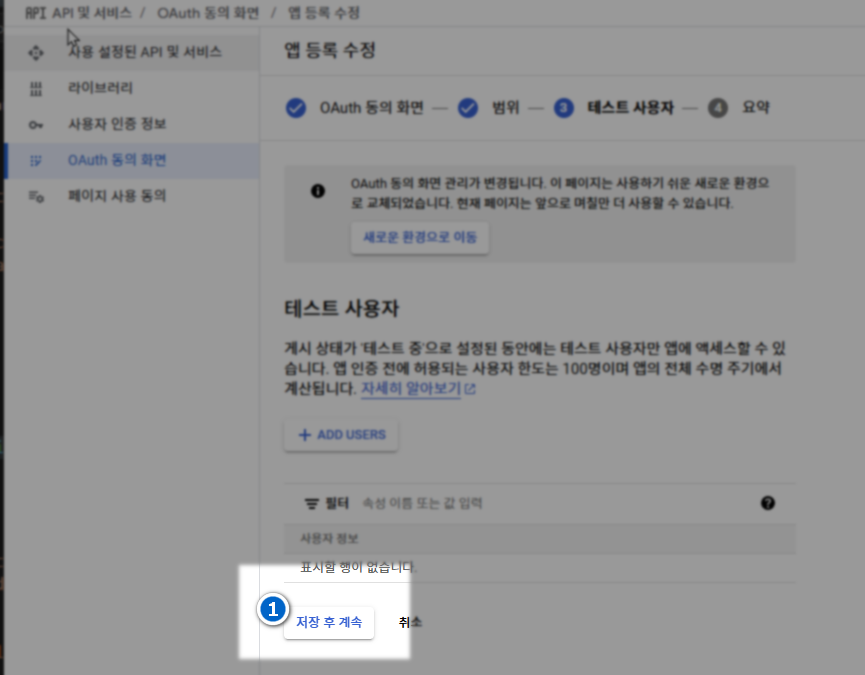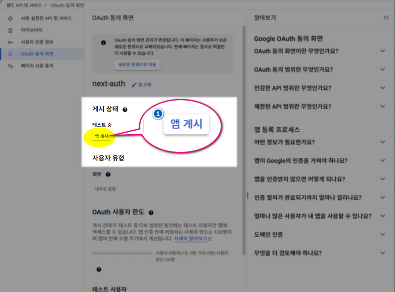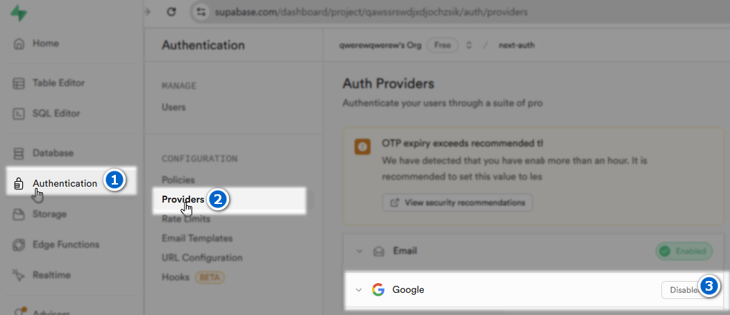 - 대쉬보드의 Authentication 로 이동후 이미지와 같이 선택한다