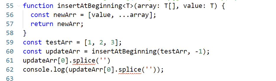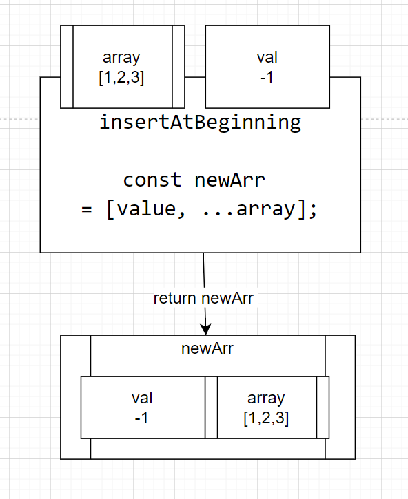 1const testArr = [1, 2, 3]; //12const updateArr = insertAtBeginning(testArr, -1); //2- testArr 에 배열로 아무 숫자나 넣는다
