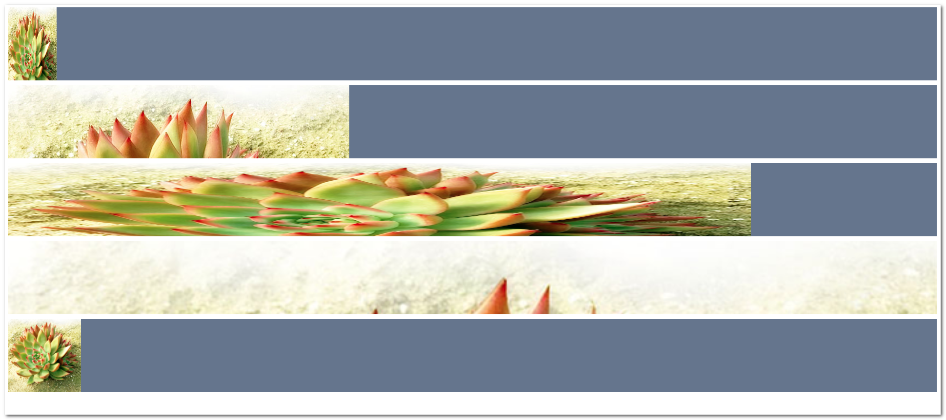 8</style>9</head>10<body>11 <div class="who who1"></div>12 <div class="who who2"></div>13 <div class="who who3"></div>14 <div class="who who4"></div>15 <div class="who who5"></div>16</body>17</html>1<!DOCTYPE html>2<html lang="ko">3 <head>4 <meta charset="utf-8" />5 <title>배경이미지의 크기</title>6 <style type="text/css">7 .who {8 height: 150px;9 margin-bottom: 10px;10 background: #67758e url("img/bg_size.png") no-repeat;11 }12 /* width height */13 .who1 {14 background-size: 100px 200px;15 background-position: center;16 }17 .who2 {18 /* 하나만 쓰면 width에 적용 height는 자동 */19 background-size: 50px;20 }21 .who3 {22 background-size: 80% 150%;23 }24 .who4 {25 /* cover 식탁커버 */26 background-size: cover;27 }28 .who5 {29 height:500px;30 /* 컨테이너 */31 background-size: contain;32 }33 </style>34 </head>35 <body>36 <div class="who who1"></div>37 <div class="who who2"></div>38 <div class="who who3"></div>39 <div class="who who4"></div>40 <div class="who who5"></div>41 </body>42</html>⑥ background-origin