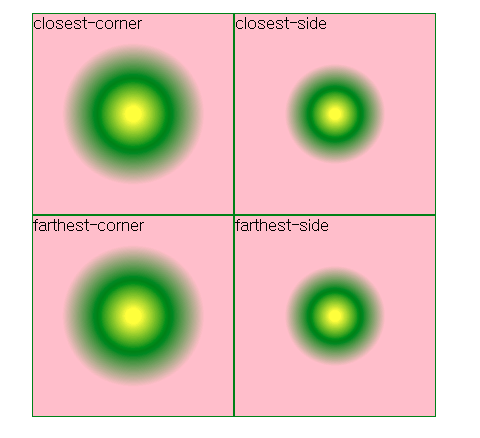 - farthest-corner 기본값. 그레디언트 중앙에서 가장 먼 모서리로 흐려짐