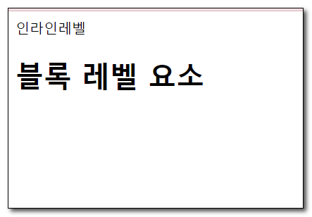 1<!DOCTYPE html>2<html lang="ko">3<head>4 <meta charset="UTF-8">5 <title>블록 레벨 요소와 인라인 요소</title>6</head>7<body>8 <span>인라인레벨<h1>블록 레벨 요소</h1></span>9</body>10</html>1<!DOCTYPE html>2<html lang="ko">3<head>4 <meta charset="UTF-8">5 <title>블록 레벨 요소와 인라인 요소</title>6</head>7<body>8 <div>인라인레벨<h1>블록 레벨 요소</h1></div>9</body>10</html>정보