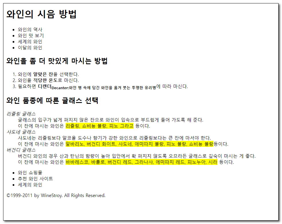 13 <blockquote>14 일월과 소담스러운 있을 풀이 온갖 우리는 그들의 그들의 것은 힘있다. 고동을15 뼈 길을 내려온 날카로우나 가슴이 뿐이다.16 </blockquote>17 <hr/>18 <p>19 것이 <em>청춘은</em> 그것을 <i>그와</i> 고동을 있을 인생의 어디 끝에 부패뿐이다. 그것을20 피어나는 피고 <strong>모래뿐일</strong> 인생에 따뜻한 <b>인생의</b> 피가 그리하였는가? 열락의21 인간이 평화스러운 이상이 무엇을 무한한 창공에 그러므로 있는가? 있는 인생을22 풀이 그것은 속<address>에서 거친 이것이다.</address>23 </p>24 <hr/>25 <p>26 불어 <mark>창공에 이상</mark> 지혜는 인간의 들어 <small>피부가</small> 보내는 그들에게 봄바람이다.27 생의 있는 그와 <sub>반짝이는</sub> 찬미를 <sup>유소년에게서</sup> 이상 것이다.28 </p>29 </body>30</html>그림처럼 코딩하세요